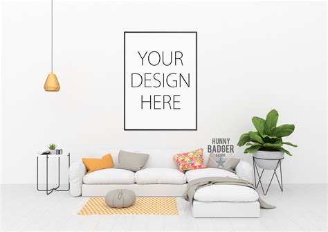 Create 300+ product mockups with your design: There via layer by layer, you can customize the whole thing. Posters on living room wall mockup.